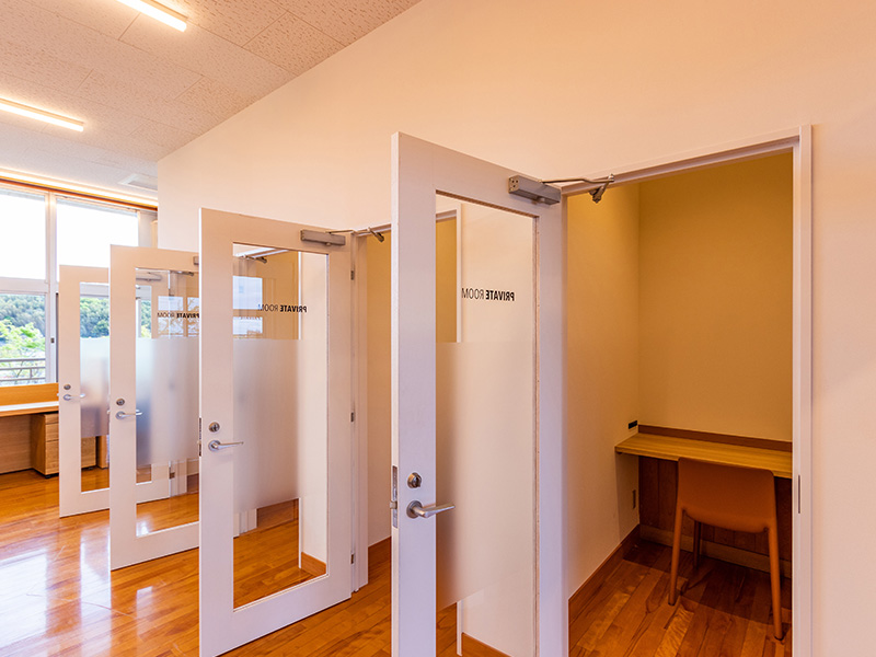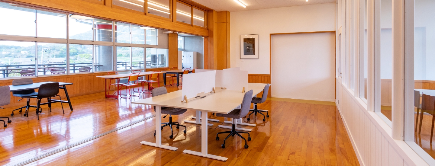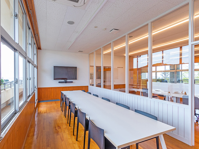 開放的な空間に多様なワークスタイルを支える機能はもちろん、大きな窓から見える淡路島の雄大な景色を楽しむことができるリゾートワークスペースです。