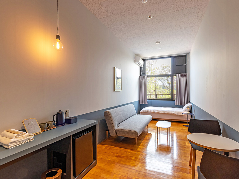 3Fにはリゾートコワーキングスペース「サトヤマデスク」もあり、リゾートワーケーションや多様な働き方をするビジネス利用にも、無料駐車場完備で淡路島の観光拠点としてのホテルとしても。企業向け研修時等のホテル貸切にも対応可能なユースフルなホテルです。
